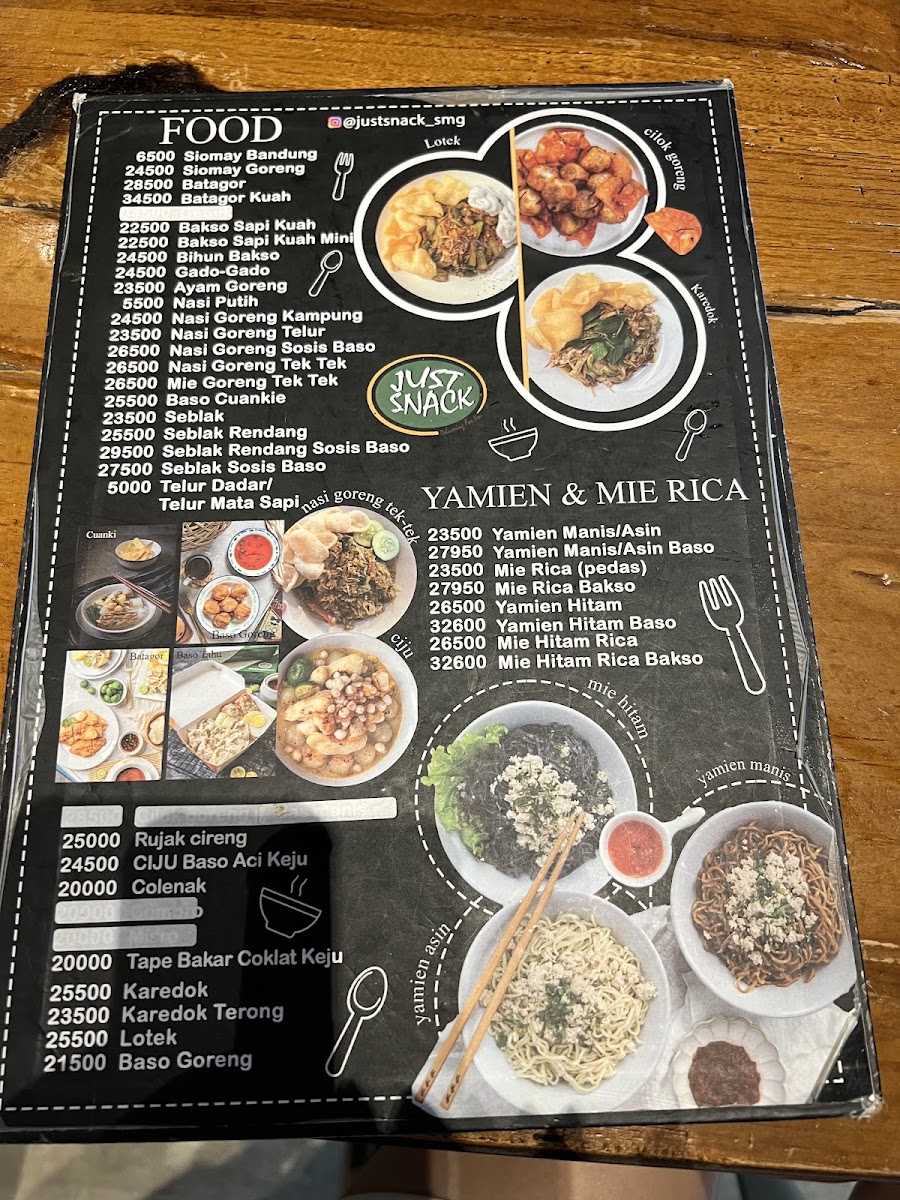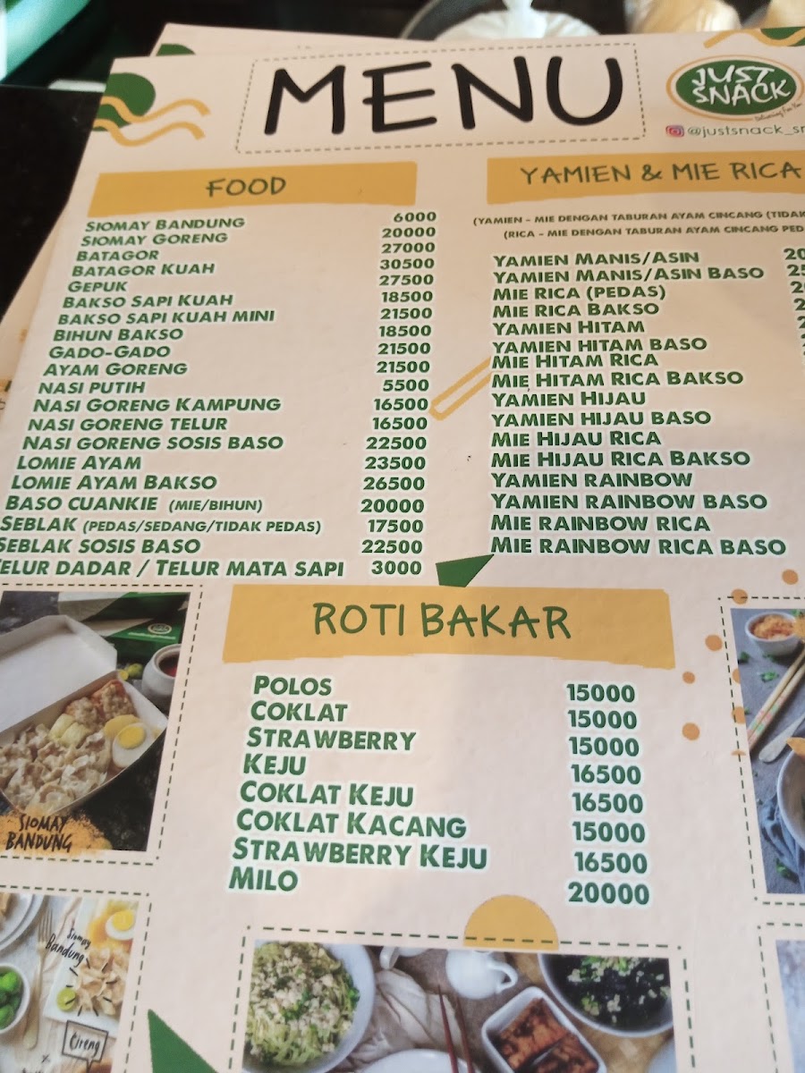 Introducing "Just Snack," a cozy culinary haven located in the heart of Semarang, Indonesia, at Jl. Telaga Bodas Raya No.2A. This delightful brand specializes in authentic Sundanese treats from Bandung, making it a must-visit destination for food enthusiasts. The menu showcases an array of mouthwatering quick bites, including batagor, siomay, and cuanki, resonating with the taste of Bandung itself.